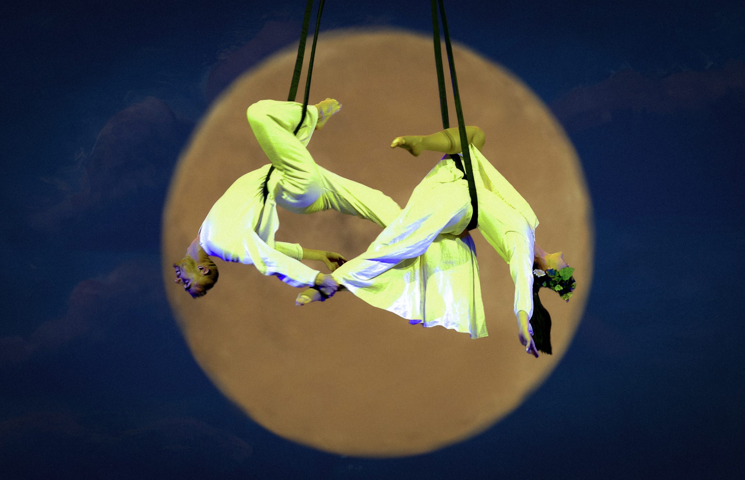 To był niezwykłej urody spektakl muzyczno – baletowy. Zaistniał gustownie za sprawą pięknie animowanych płócien malarskich, muzyki spotęgowanej naturalnymi głosami przyrody oraz tańców, w czasie których artyści szybowali na linach pod pułapem.